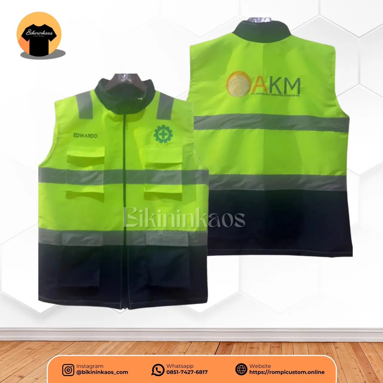 Selain itu, rompi custom menunjukkan bahwa perusahaan serius dalam menjaga keselamatan dan profesionalisme. Hal ini tentu meningkatkan kepercayaan klien maupun mitra kerja.